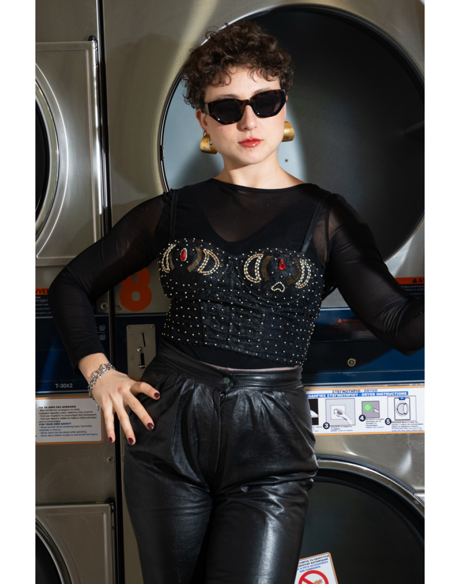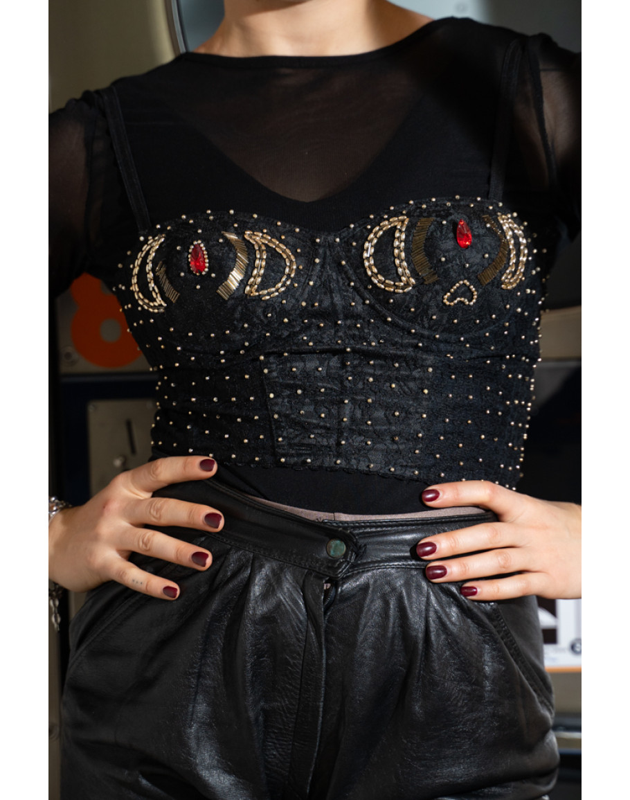 Vintage κορσές με κεντημένες λεπτομέρειες S