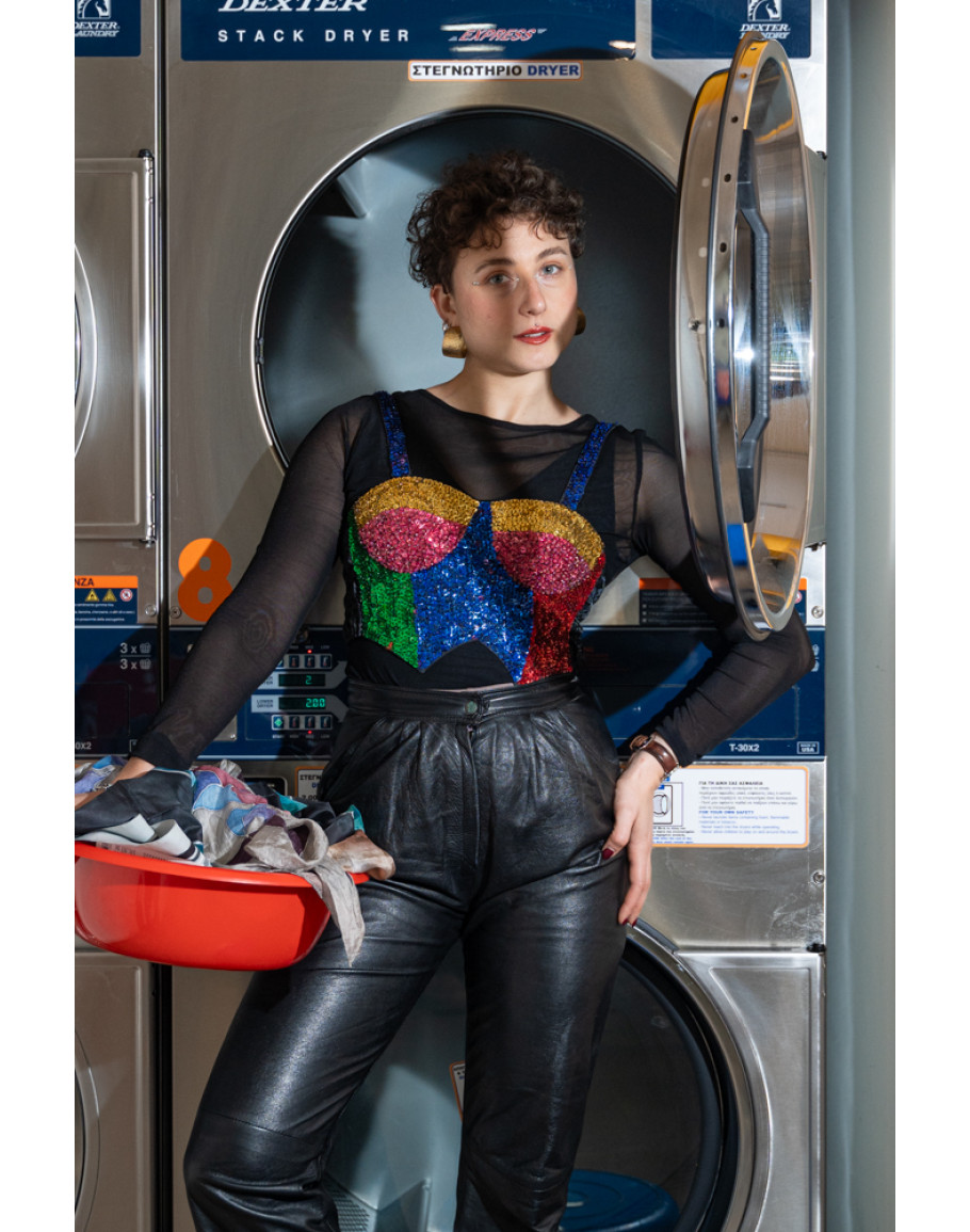 Vintage κορσές με κεντημένες λεπτομέρειες S