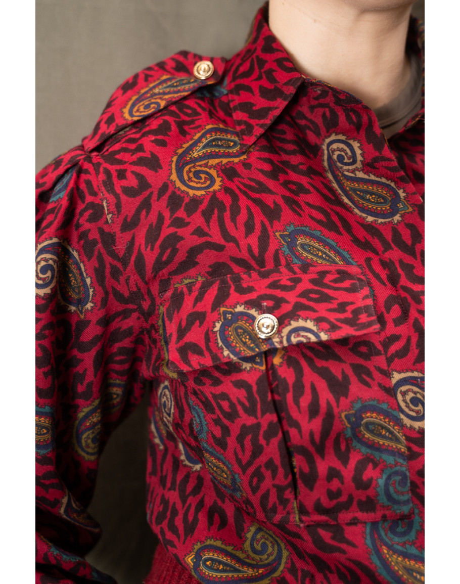 Vintage μάλλινο εμπριμέ πουκάμισο M