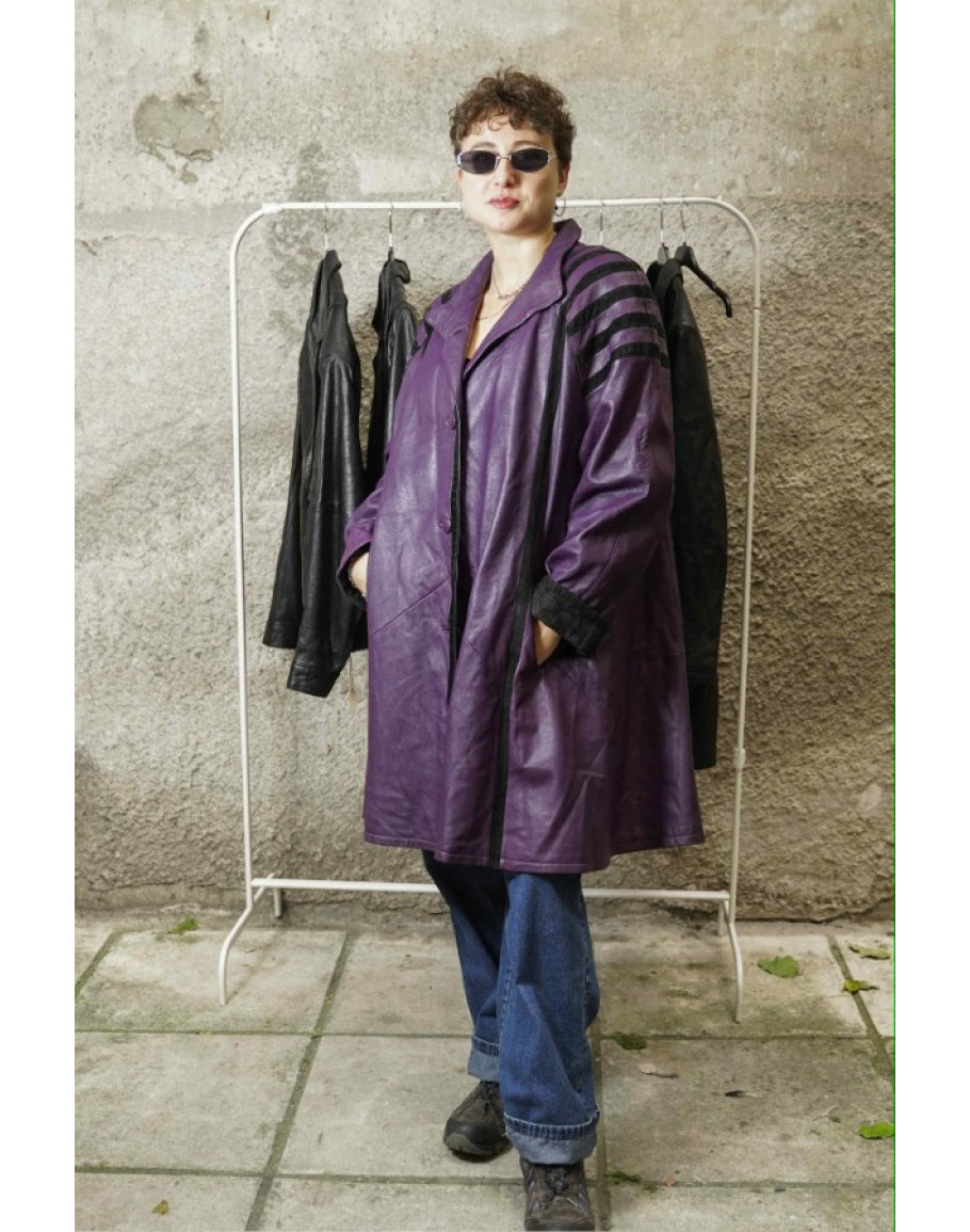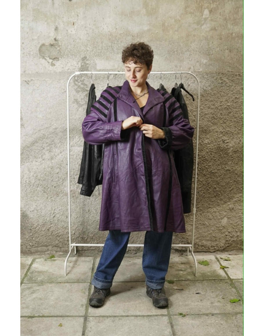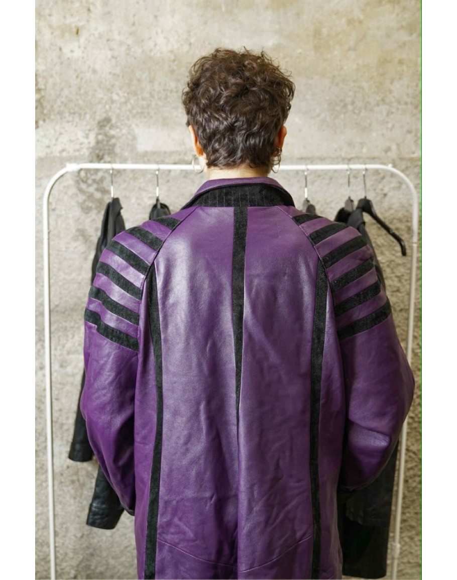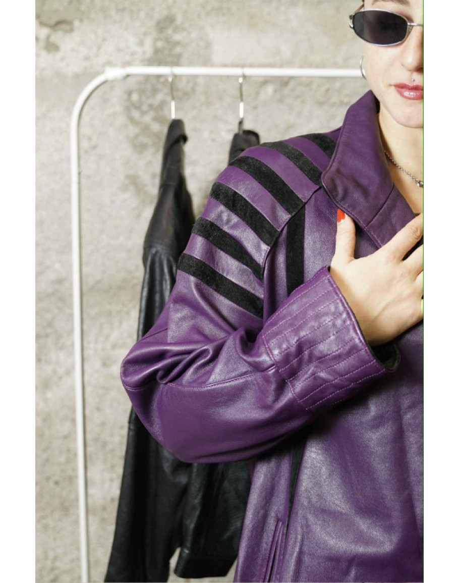Vintage μωβ δερμάτινο τζάκετ με suede λεπτομέρειες
