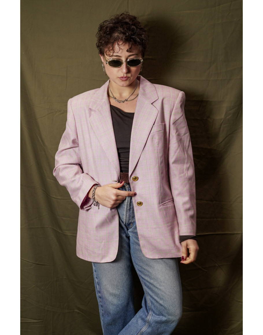 Vintage wollen plaid blazer M