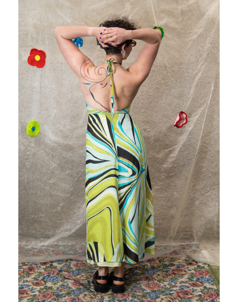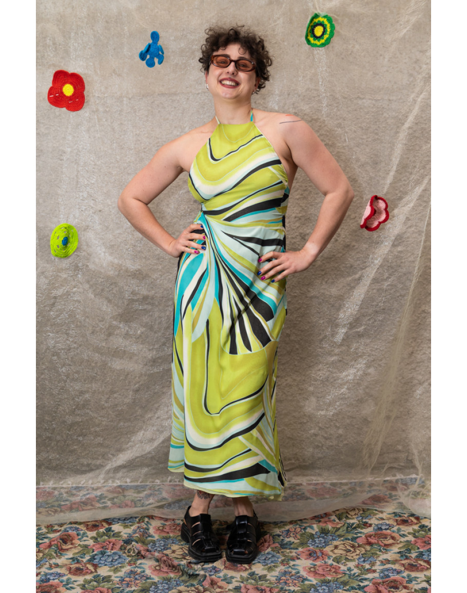 Vintage Υ2Κ μεταξωτό εμπριμέ φόρεμα S